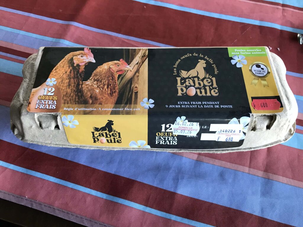 En attendant, nous devons faire avec cette boite d’oeufs. Chèrement payée: 680 Fcfp la douzaine. Taille riquiqui. Renseignements pris auprès de la caissière, la boite a subitement augmenté de 20 Fcfp. Pour quelles raisons ? On la devine, la rareté d’un produit faisant généralement son prix, le producteur profite de l’occasion pour tirer quelques bénéfices supplémentaires. Sur le dos naturellement du nunaa qui, déjà confronté à la hausse du prix de la viande, trouve ici un substitut de protéine a priori bon marché.