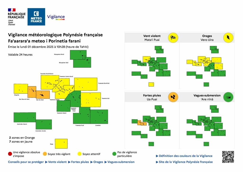 C’est l’Abondance, paraît-il…raison de plus pour que Météo France décide de placer les îles de la Société en vigilance orange en raison d’un risque de fortes pluies.