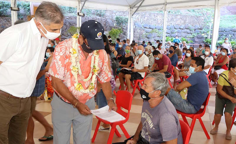 Le président Edouard Fritch était présent, samedi matin, à l’ouverture du centre de vaccination contre la covid-19 mis en place, ce week-end, à la Présidence.