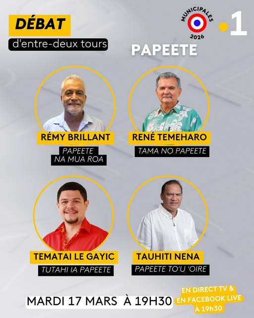 Polynésie la 1ère annonce la tenue d’un débat du second tour animé par Lucile Guichet et Tauarii Lee, ce soir, mardi 17 mars 2026.