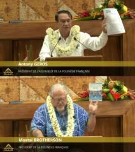 L’actuel locataire du perchoir, numéro 2 du Tavini, a « ouvert le bal » en reprochant au gouvernement, de manière assez subtile, de n’avoir tiré aucun enseignement des trois colloques organisés par Tarahoi sur des thèmes essentiels comme la vie chère, le foncier ou encore la transition énergétique. « De véritables espaces de réflexion collective (…) pour préparer l’avenir de ce pays », avec à la clé, des recommandations opérationnelles, dont le gouvernement n’a – pour l’heure – nullement tenu compte. En d’autres termes, le président de l’assemblée réaffirme le voeu de travailler plus étroitement, en cohérence, avec le pouvoir exécutif. Par ailleurs, Antony Géros n’a pas manqué d’évoquer « la situation interne de notre assemblée », en référence à la constitution d’un nouveau groupe dissidents. Un bouleversement qui ne semble pas l’inquiéter outre mesure, estimant que par le passé (1957, 1993, 2004-2011), d’autres événements de ce type ont émaillé la vie de l’institution. Mais il n’a pas manqué d’ironiser quant aux divergences de vue apparues dernièrement sur les conditions d’accès à la pleine souveraineté de « maohi nui »: trois ans, c’est long quand même!