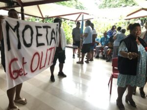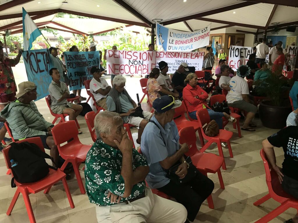 Pour ces contestataires – originaires en grande partie de la commune de Paea (côte Ouest de Tahiti), celle administrée il ya peu encore par Antony Géros – il s’agissait alors de crier leur colère et leur incompréhension après la démission de quinze élus regroupés désormais sous la bannière d’un nouveau groupe baptisé « A Fano Tia ». A leurs yeux, pas de doute: tout est orchestré par le président Brotherson dont ils réclament le départ.